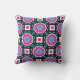 Lebhaftes Outdoor-Kissendesign mit einem nahtlosen Muster aus geometrischen Formen in Rosa, Blau, Schwarz und Weiß.