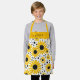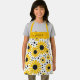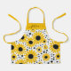 Moderne Kinder Schürze mit einem Sonnenblumenmuster und einem femininen, handgeschriebenen Schriftnamen. Personalisieren Sie mit Ihrem Namen.