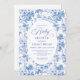 Chic Timeless Royal Blue Toile de Jouy Baby Shower Einladung