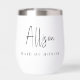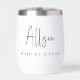 Chic Thermalweintumbler für Ihre Trauzeugin, Ehrenmatron, Brautmädchen oder andere Mitglieder Ihres Brautparty zu feiern mit Ihrem Brautparty, Junggeselinnen-Abschied, Empfang und anderen Hochzeitsveranstaltungen. Personalisieren Sie mit ihrem Namen in einer dünnen modernen Kalligraphie-Skript und ihre Rolle in eleganten Serifentypografie.