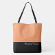 Diese hübsche Tüte nach vorne zeigt das Wort "Trauzeugin" in weißer Textfarbe über schwarz mit dem oberen Tüte in Custom Cantaloupe. Hat viel Platz für personalisierte Texte. Grafik und Text sind auf beiden Seiten dieses Totschlages. Schwarzer Griff. Passen Sie weiter an oder kaufen Sie wie gezeigt.