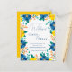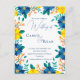Chic Trendy Blue Yellow Floral Wedding Einladung Postkarte