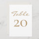 Diese eleganten und stilvollen Hochzeitskarten verfügen über eine individuelle Tischnummer und ein elegantes Schriftart-Set. Auf der Vorderkarte befindet sich ein warmer Goldimitat vor weißem Hintergrund, während auf der Rückseite der Karte eine hübsche Weizenfarbe zu sehen ist. Tipp: Entfernen Sie das Zazzle-Wasserzeichen auf der Rückseite der Karte, indem Sie diese Option auf der Produktseite auswählen. Diese Karte ist Teil einer Sammlung, die Einladungen und andere Hochzeitsfeste beinhaltet.