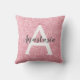 Chic und Glam rot Rosa Rosa Gold Glitzer Glitzern metallische werfen Kissen, mit einem großen, weißen Monogramm Initial und Ihr individuelle Name in einem eleganten grauen Drehbuch-Schriftart. Personalisieren Sie dieses angesagte Kissen mit Ihrem Namen oder Monogramm Initial. Sie können Textfarbe, Schriftart und Schriftgröße mit der Option Anpassen ändern.