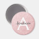 Chic und Glam blush rosa Rosa Gold Glitzer Glitzern metallische Magnet, mit einem großen, weißen Monogramm Initial und Ihrem individuelle Name in einem eleganten grauen Drehbuch Schriftart. Personalisieren Sie diesen trendigen Magneten mit Ihrem Namen oder Monogramm Initial. Sie können Textfarbe, Schriftart und Schriftgröße mit der Option Anpassen ändern.