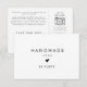 Diese schicke Typografie, handgefertigt mit Liebe danke, dass Sie die Gehäusekarte bestellen, macht den perfekten Verpackungseinsatz für einen kleinen Geschäftsinhaber oder Handwerker. Das einfache Design zeichnet sich durch klassisch minimalistische schwarz-weiße Typografie mit einem rustikalen Bohustempfinden aus. Anpassbar in jeder Farbe. Die Karte enthält ein Dankeschön für Ihre Bestellnachricht, einen Discount-Code, Kundenservice-Infos, Snap-Tag und Freigabe auf Social Media, und einen QR-Code, um eine Überprüfung verlassen.