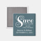 Mit dieser angesagten und modernen schicken Typografie, die das Date Magnet speichert, verkünden Sie Ihre Hochzeit mit Freunden und Familie. Dieses Design zeichnet sich durch ein schlichtes und elegantes Textdesign in Weiß auf blauem Hintergrund aus. Einfach anzupassen, fügen Sie einfach die Details Ihrer Hochzeit in den Textfeldern zur Verfügung gestellt. Klicken Sie auf den Button "Anpassen", um weitere Personalisierungsoptionen zu finden.