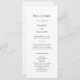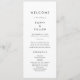 Dieses schicke typografische Hochzeitsprogramm ist perfekt für eine moderne Hochzeit. Das einfache Design zeichnet sich durch klassisch minimalistische schwarz-weiße Typografie mit einem rustikalen Bohustempfinden aus. Anpassbar in jeder Farbe. Behalt das Design minimal und elegant, wie es ist, oder personalisiere es durch Hinzufügen von eigenen Grafiken und Kunstwerken. Geben Sie den Namen der Braut und des Bräutigams, das Datum und den Ort der Hochzeit, Dankeschön-Nachricht, Dienstordnung, Brautparty und ein optionales "in Loving Memorial" ein.