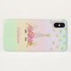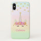 Chic schönes Einhorn mit Sternen, rosa Blume und Goldkonfetti auf pastellfarbenen Hintergrund iPhone X Case. Name bereit, personalisiert zu sein.