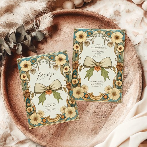 Chic Vintag floral Art Nouveau Hochzeit Einladung