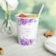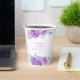 Eleganter und einfacher Brautparty-Papierbecher mit lila Rose-Blume und lebendigem Kalligrafietext.