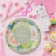 Schöne, weiße und grüne Hydrangeas mit rosa und cremefarbenen Rose, Gänseblüten, kleinen Blüten und Blätter auf Salbei grün, personalisieren Sie diese Teller für Ihre Hochzeit, Brautparty, Engagement Party, mit Ihren Details in schicken weißen Buchstaben. PASSENDE Artikel in unserem Geschäft.