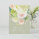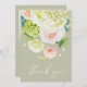 Schöne Aquarellfarben von weißen und grünen Hydrangeas mit rosa und cremefarbenen Rose, Gänseblüten, kleinen Blüten und Blätter sind auf der Vorderseite dieser Weise grün Hochzeitsgarantie. Ihr Foto und Ihre Nachricht werden auf der Rückseite gedruckt. PASSENDE Artikel in unserer Sammlung.
