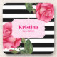 Chic Watercolor Pink Roses Schwarz-weiße Streifen Getränkeuntersetzer
