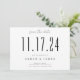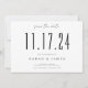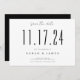 Eine schlichte, moderne Save the Date Karte. Personalisieren Sie dieses elegante schwarz-weiße Design, um Ihre Hochzeit Datum, Namen und Details.