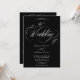 Das elegante Schwarz-Weiß in einer kalligraphischen Hochzeitseinladung mit uAwg, Unterkünften, Details und mehr Infos. Mit einem schönen Pinselkalligraphieskript.