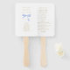 Diese schicken und einfachen Hochzeitsfans mit knusprigem, weißem Hintergrund sind mit einem trendigen, staubblauen Bandknoten, Schriftart in Goldimitation und anpassbarem Text ausgestattet. Dieser Artikel ist Teil einer kompletten Sammlung von Hochzeitsmaterial und stationär.