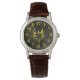 Diese stilvolle Uhr zeigt eine goldene Dragon Head Grafik in der Mitte auf einem braunen Dragon Scale Hintergrund mit den Minuten und Stunden Zahlen in gelb . Leckerei selbst oder überraschen Sie jemanden mit etwas, das Sie schätzen können.