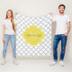 Ein elegantes, weißes und graues marokkanisches Vlies-Vlies-Decken mit gelbem Abzeichen, das Sie personalisieren können, indem Sie Ihren Namen und Monogramm-Erstdruck hinzufügen. Dies ist Teil der Quatrefoliensammlung für Kokosmilch und Meadowlark Spring. Wählen Sie aus 3 Größen.