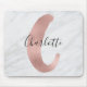 Chic White & Gray Marble Rose Gold C Monogram Name Mousepad