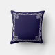 Chic White Lace Vector & Monogram on Navy Blue Kissen