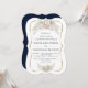 Chic White Pink Roses Navy Blue Gold Hochzeit Einladung