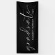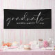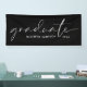 Chic minimale schwarze Banner für Ihre Abschlussfeier mit "Graduierte" in einem modernen weißen Skript und den Namen und Klasse Jahr des Absolventen in der einfachen weißen Typografie.