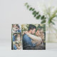 Chic Ankündigung Datum freihalten Postkarte, die Ihr Verlobung Foto mit einem Streifen von drei kleineren quadratischen Fotos überlagert und "Save the Date" in einem stilvollen weißen Skript. Fügen Sie Ihre Vornamen, das Hochzeitdatum und die Lage in der einfachen modernen weißen Typografie. Auf der Rückseite personalisieren Sie Ihre Save the Date Angaben und fügen Ihre Namen in ein signaturartiges Skript ein.