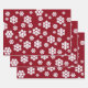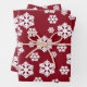 Chic White Snowflakes Nordic Pattern auf Dunkelrot Geschenkpapier Set
