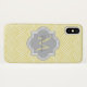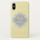 Ein chic gelb Art Deko gewölbte Jakobsmuster Barely There iPhone X Case mit einem weichen grauen Quarrefolien-Abzeichen können Sie personalisieren, indem Sie einfach Ihre eigene Monogramm und Name. Dies ist Teil der Meadowlark Scallops Harbor Mist Monogram Spring Collection.
