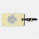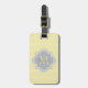 Ein schicke, gelbe Art Deko gewölbte Skallop Muster Gepäckanhänger mit einem weichen grauen Quarrefolien Abzeichen können Sie personalisieren, indem Sie einfach Ihre eigene Monogramm und Namen hinzufügen. Dies ist Teil der Meadowlark Scallops Harbor Mist Monogram Spring Collection.