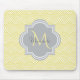 Ein elegantes, gelbes Kunstmousepad mit gewölbtem Jakobsmuster-Deko mit einem weichen grauem Quarrefolienmousepad, das Sie ganz einfach mit Ihrem eigenen Monogramm und Namen personalisieren können. Dies ist Teil der Meadowlark Scallops Harbor Mist Monogram Spring Collection.
