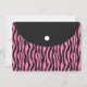 Ein cleveres Design der Einladung zu sein wie rosa und schwarz Zebra Druck Damen Kupplung Handtasche auf einer Seite. Auf der anderen Seite hat es ein Mannequin mit einem Kleiderstück und einem Paar Schuhe mit hoher Ferse. Girly, stylish und trendig in Rosa und Schwarz, perfekt für Mädchen, zwischen Teens für ein Modenschau Thema oder Makeover Thema Party. Personalisieren Sie Ihre Party-Daten!