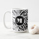 Eine stilvolle Tasse mit schwarz-weißem Zebradruck, der mit Ihrem schicken Initial-Monogramm betont wird. Schaffen Sie sich selbst oder geben Sie als Geschenk. PASSENDE Artikel in unserem Geschäft.