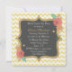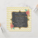 Reizende Brautpartyeinladung, erfolgt in einer quadratischen Form mit einem hellgelben mit weißem Zickzack Musterhintergrund. Grafiken eines gelben und korallenroten glasigen schauenden dekorativen gerahmten grauen Textbereichs, in der Mitte, hat stilvolle bunte Blumen, in zwei Ecken. Die Rückseite wird im gleichen gelben und weißen Zickzack Zickzackmuster getan. Personifizieren Sie den ganzen Text für Ihr Brautereignis. Schöne Einladung, welche die Braut schätzt.