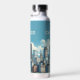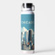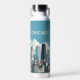 Chicagoer Wasserflasche mit Landschaft und Skyline von Chicago, Illinois. Modernes Design. Eigener Text. Ändern Sie den Text auf der Wasserflasche oder verließ, wie es ist. Verwenden Sie die Vorlage, um Ihre eigene Chicagoer Skyline-Wasserflasche zu erstellen.