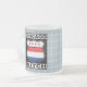 Chicago Dutch Shield Tasse. Das holländische Design von Chicago im Stil eines coolen amerikanischen Wegweises. Der Text Chicago Dutch ist oben und unten, mit der Flagge der Stadt Chicago und der Flagge der Niederlande innerhalb des Wegzeichens. Ideal für Chicagoer Abstammung aus den Niederlanden und für Ex-Pats aus der Windy City.