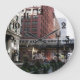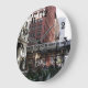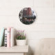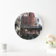 Verschönern Sie Ihren Wohnraum mit dieser modernen Wanduhr mit schwarzen Ziffern, die ein Foto des Hochbahngleises für Pendler in der Innenstadt von Chicago, Illinois zeigt. Wählen Sie Ihren Uhrstil zusammen mit der Farbe der Zeiger.