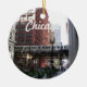 Rundschmuck mit einem Foto-Image der Innenstadt von Chicago und seinem berühmten, erhöhten Pendlerzug. Das Bild wird nur auf einer Seite gedruckt. Wählen Sie Ihren Schmuckstil aus. Macht ein tolles Reise-Andenken!