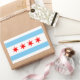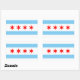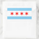 Drei weiße Streifen stellen die Nord-, West- und Südseite der Stadt dar. Der obere blaue Streifen repräsentiert den Lake Michigan und die Nordzweigstelle des Chicago River. Der untere blaue Streifen repräsentiert den Südzweig des Flusses und den Großen Kanal. Der erste Stern repräsentiert Fort Dearborn. Seine sechs Punkte symbolisieren Transport, Arbeit, Handel, Finanzen, Popularität und Berühmtheit. Der zweite Stern steht für das große Chicagoer Feuer von 1871. Seine sechs Punkte repräsentieren die Tugenden von Religion, Bildung, Ästhetik, Gerechtigkeit, Wohltätigkeit und Bürgerstolz. Der dritte Stern symbolisiert die Weltausstellung von Kolumbien von 1893. Seine sechs Punkte stehen für politische Einheiten Chicago gehört und die Flaggen, die über das Gebiet geflogen sind: Frankreich, Großbritannien, Virginia, das nordwestliche Territorium, Indiana Territory und Illinois. Der vierte Stern repräsentiert die Ausstellung "Century of Progress" (1933-1934). Seine Punkte beziehen sich auf das Recht auf Streitigkeiten: die zweitgrößte Stadt der Staaten (jetzt 3.), das lateinische Motto von Chicago (Urbs in horto - Stadt im Garten), das Motto "Ich will" von Chicago, der Große Zentralmarkt, Wunderstadt und Kongressstadt. — in Anlehnung an Wikipedia