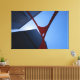 Nimm Zuhause ein Chicagoer Icon! Von unten betrachtet, sind die modernen Wolkenkratzer von Chicago von einer kühnen, abstrakten Struktur aus rotem Stahl gegenüber einem klaren, blauen Himmel gerahmt. Die kontrastierenden Elemente schaffen eine auffallende, aufstrebende Perspektive.