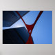 Nimm Zuhause ein Chicagoer Icon! Von unten betrachtet, sind die modernen Wolkenkratzer von Chicago von einer kühnen, abstrakten Struktur aus rotem Stahl gegenüber einem klaren, blauen Himmel gerahmt. Die kontrastierenden Elemente schaffen eine auffallende, aufstrebende Perspektive.