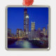 Chicago, Illinois, Skyline nachts mit Chicago Silbernes Ornament