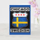 Das schwedische Design von Chicago im Stil eines coolen amerikanischen Wegweises. Der Text Chicago Schwedisch ist oben und unten, mit der Flagge der Stadt Chicago und der Flagge von Schweden im Schild der Route. Ideal für Chicagos schwedischer Abstammung und für Ex-Pats in der Windy City.