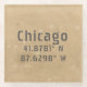 Längen- und Breitengraden von Chicago IL in grauem, modernem urbanem Schriftart auf wässrigem Papphintergrund