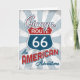 Diese Vintage Route 66 Chicago Illinois ist mit dem Schild Route 66 Highway gekennzeichnet, auf dem sich ein amerikanisches Abenteuer befindet. In Retro rot weiß und blau.