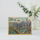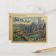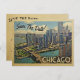 Vintagen Postkarten aus Chicago mit Blick auf die Skyline der Stadt Save the Date. Dieses coole Retro-Design aus der Mitte des Jahrhunderts ist der perfekte Weg, um Gäste in Ihre Chicago Illinois Hochzeit in Urlaubsort zu bringen.