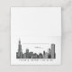 Hochzeitsbegleiter / Platzkarte mit einem kunst-Deko inspirierten Design mit Downtown Chicago City Skyline und benutzerdefinierten Monogramm. Klassisches Schwarz-Weiß-Farbschema.