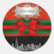 Chicago Skyline, Red Green Quatrefoil Xmas Runder Aufkleber