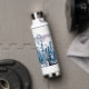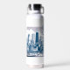 Chicago Skyline Wasserflasche mit Chicago, Illinois City und Skyline. Blaue Farben. Modernes Design. Benutzerdefinierter Text auf der Wasserflasche. Ändern Sie den Text oder verließ, wie er ist. Verwenden Sie die Vorlage, um Ihre eigene Chicagoer Skyline-Wasserflasche zu erstellen.